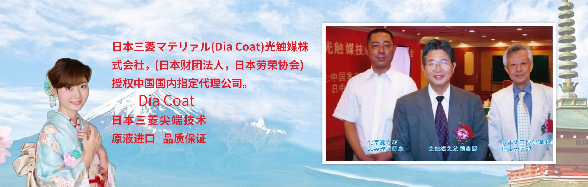 溫州泓創菱之花環保科技有限公司是日本三菱マテリァル(Dia Coat)光觸媒株式會社,(日本財團法人,日本勞榮協會)授權溫州市地區指定代理公司。